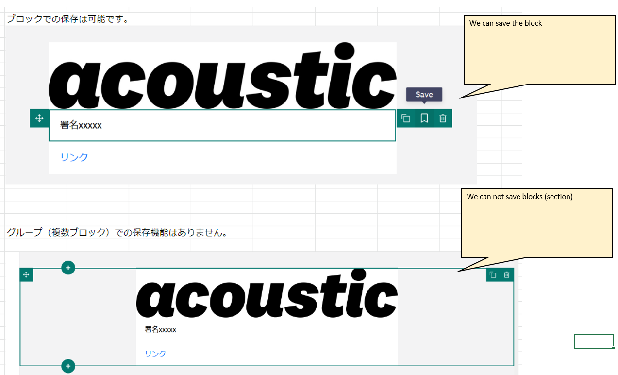 We understand that the "Save block" in the upper right corner of the blocks in the Drag-and-Drop editor, a new feature of the Message Composer (MC), only saves each block. We would like to be able to save with grouped blocks(section).