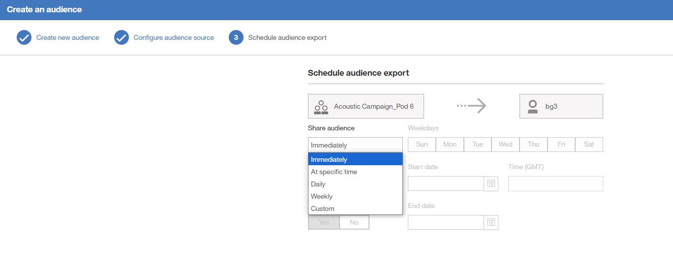 Today, it is possible to schedule an export of a social audience daily, weekly, and immediately, but it would be great if we could also schedule it monthly. (See attached screenshot)